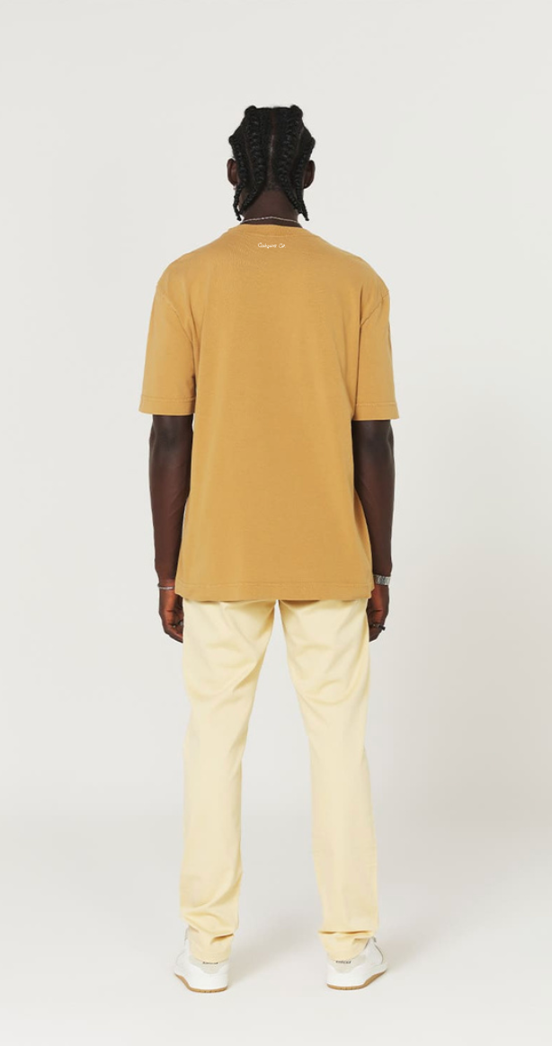 Camiseta Tubular Streetwear com estampa ESCUDO centralizada no peito e LOGO nas costas. Disponível nas cores preta, marrom, caramelo e off-white. A estampa nas cores preta, marrom e caramelo é em off white, na cor off-white a estampa é em verde. Modelagem tubular streetwear com design exclusivo.